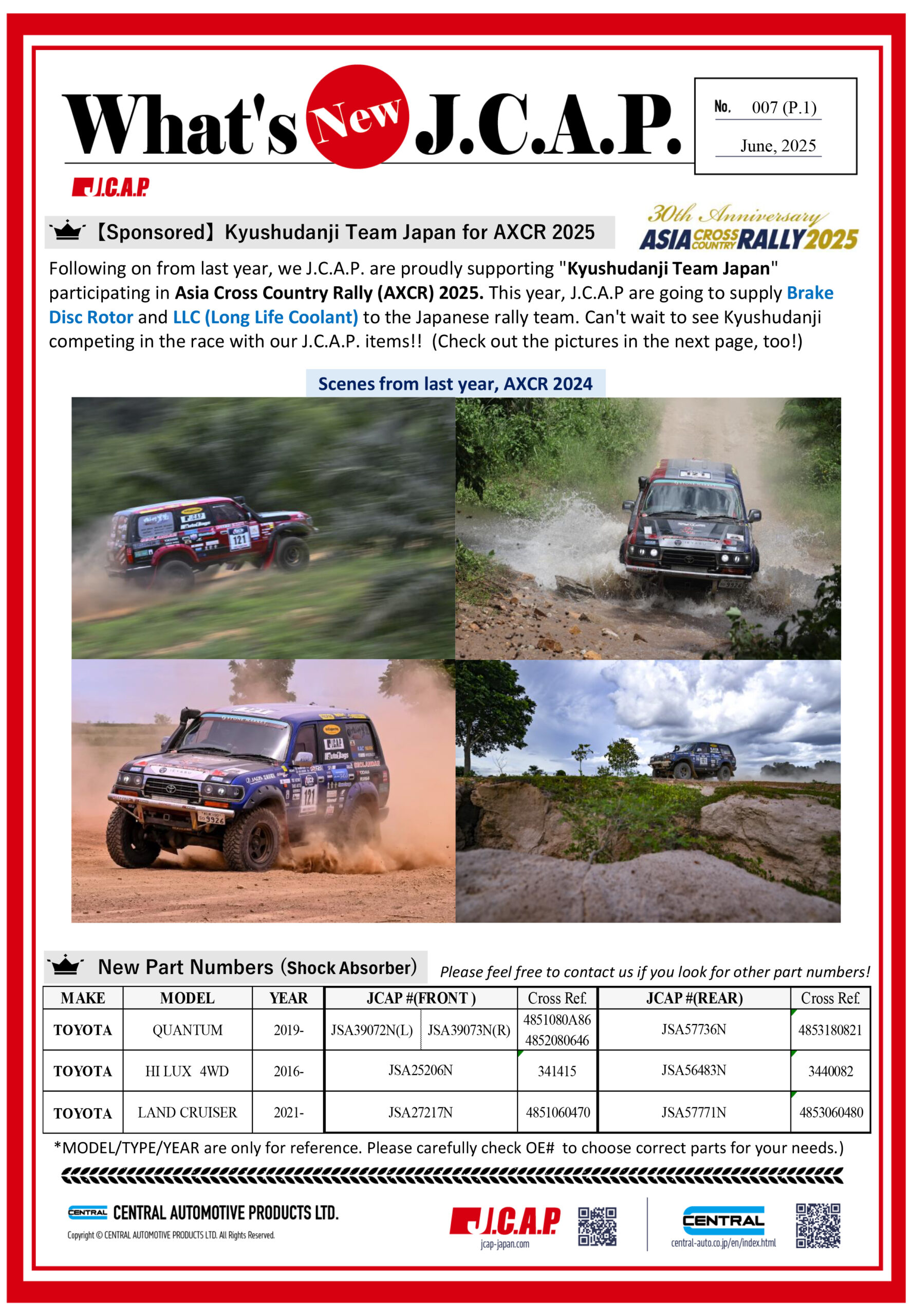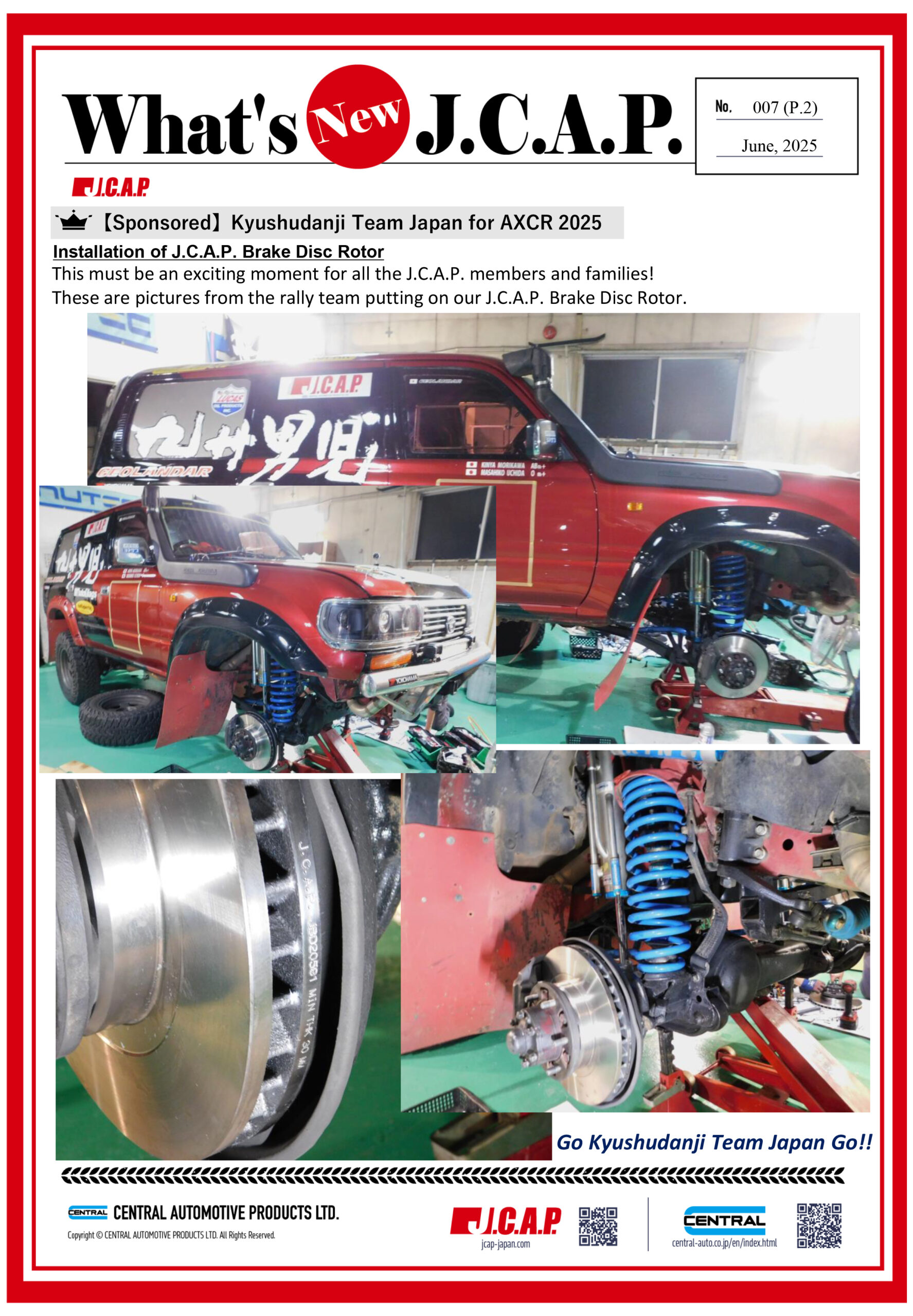 Here is the latest monthly news letter, What’s New J.C.A.P. The main topic is about Asia Cross Country Rally (AXCR) 2025 with our J.C.A.P. Brake Disc Rotor and LLC. You can also download the letter in PDF here. (Vol.7)